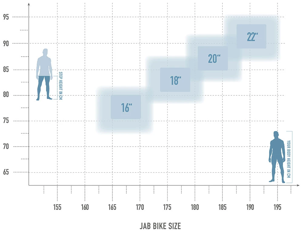 Mit Hilfe unserer Grafik wollen wir Dir eine Empfehlung bei der Suche nach Deiner richtigen Rahmengröße geben. Neben Schrittlänge sowie Körpergröße spielt natürlich auch Dein persönlicher Fahrstil, Einsatzbereich sowie Vorliebe eine große Rolle. Wenn Du mit Deinen Angaben im Grenzbereich liegen solltest, kannst Du zwischen zwei Rahmenhöhen wählen: die kleinere Rahmengröße ist agiler/wendiger/verspielter, die nächstgrößere Rahmenhöhe laufruhiger/spurtreuer.
