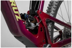 Für das Modelljahr 2023 wurde der Rahmen von Santa Cruz überarbeitet und bietet erstmals eine „Glovebox“ auf der Oberseite des Unterrohrs. Außerdem gibt es ein Sichtfenser im unteren Teil des Sitzrohrs, durch welches der SAG des Dämpfers problemlos eingestellt werden kann. Kleine Veränderungen der Geometrie durch den bewährten Flip Chip bleiben natürlich weiterhin möglich.
