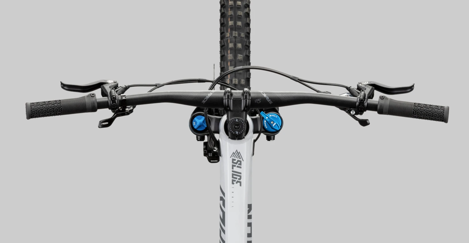 Die Fox 36 Performance Federgabel mit 150mm und der Fox Float DPS Performance Dämpfer mit 140mm Federweg geben Dir die benötigte Performance, um jedes Hindernis mit Eleganz und Leichtigkeit zu bewältigen. Die Zusammensetzung aus Race Face Aeffect R Vorbau und Lenker demonstriert den roten Faden, das dieses Trailbike verfolgt. Der SRAM Antrieb glänzt mit seiner Zuverlässigkeit. Die Kombination aus einer 12-fach SRAM Eagle Schaltgruppe bietet die perfekte Übersetzung, um nicht nur die Berge zu besteigen, sondern auch den Speed auf allen Wegen zu halten! Eine Magura MT5 Vierkolben Bremsanlage vorne und hinten rundet den Grundgedanken einer einheitlichen Interaktion der Komponenten ab, sodass eine absolut aufeinander abgestimmte Funktionalität herausgekitzelt werden kann. Diese Vollkommenheit macht sprachlos! Doch das SLIDE TRAIL AL 8.0 setzt noch einen obendrauf! Mit dem aggressiven Magic Mary an der Front und dem geschmeidigen Big Betty am Heck aus dem Hause Schwalbe, beide mit ADDIX Soft Gummimischung und Supertrail Karkasse, hast Du stets endlosen Grip und volle Kontrolle auf dem Trail. Abgerundet wird das grandiose Gesamtpaket durch den leichten SUNringlé Düroc 35 Expert Systemlaufradsatz. Grenzenloser Fahrspaß mit dem SLIDE TRAIL AL 8.0!